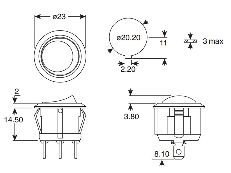 Kontakten kræver 20mm hul til montage